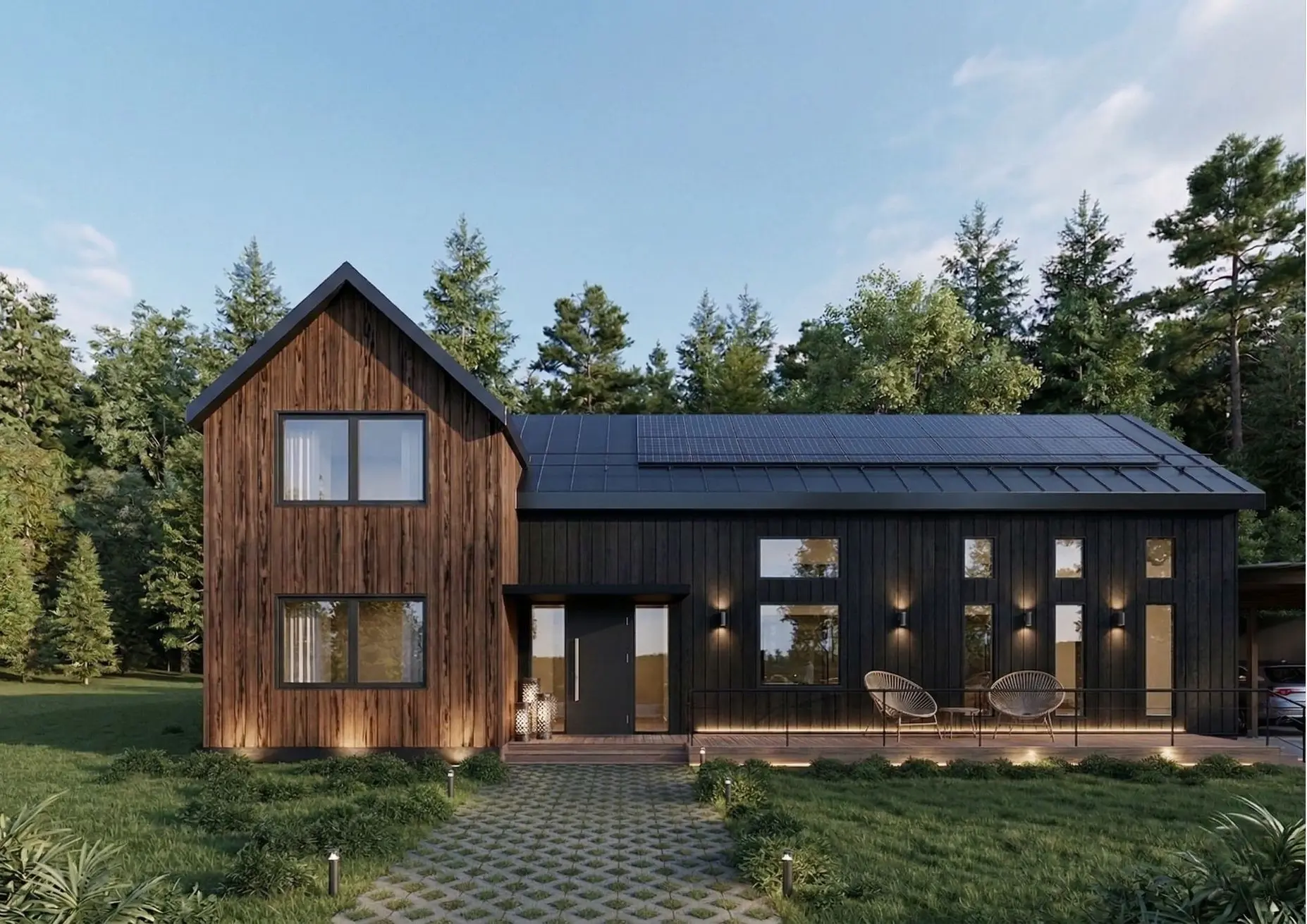 The P House is a 2,400-square-foot residence that exemplifies Scandinavian Modern architecture through its minimalist geometric silhouette and high-performance functionalism.