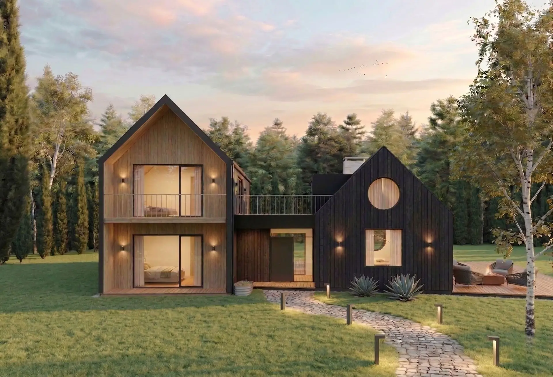 The D House is a 2,030-square-foot residence that exemplifies Scandinavian-inspired architecture through its intelligent layout, separating a double-height public living space from a dedicated two-story private volume.