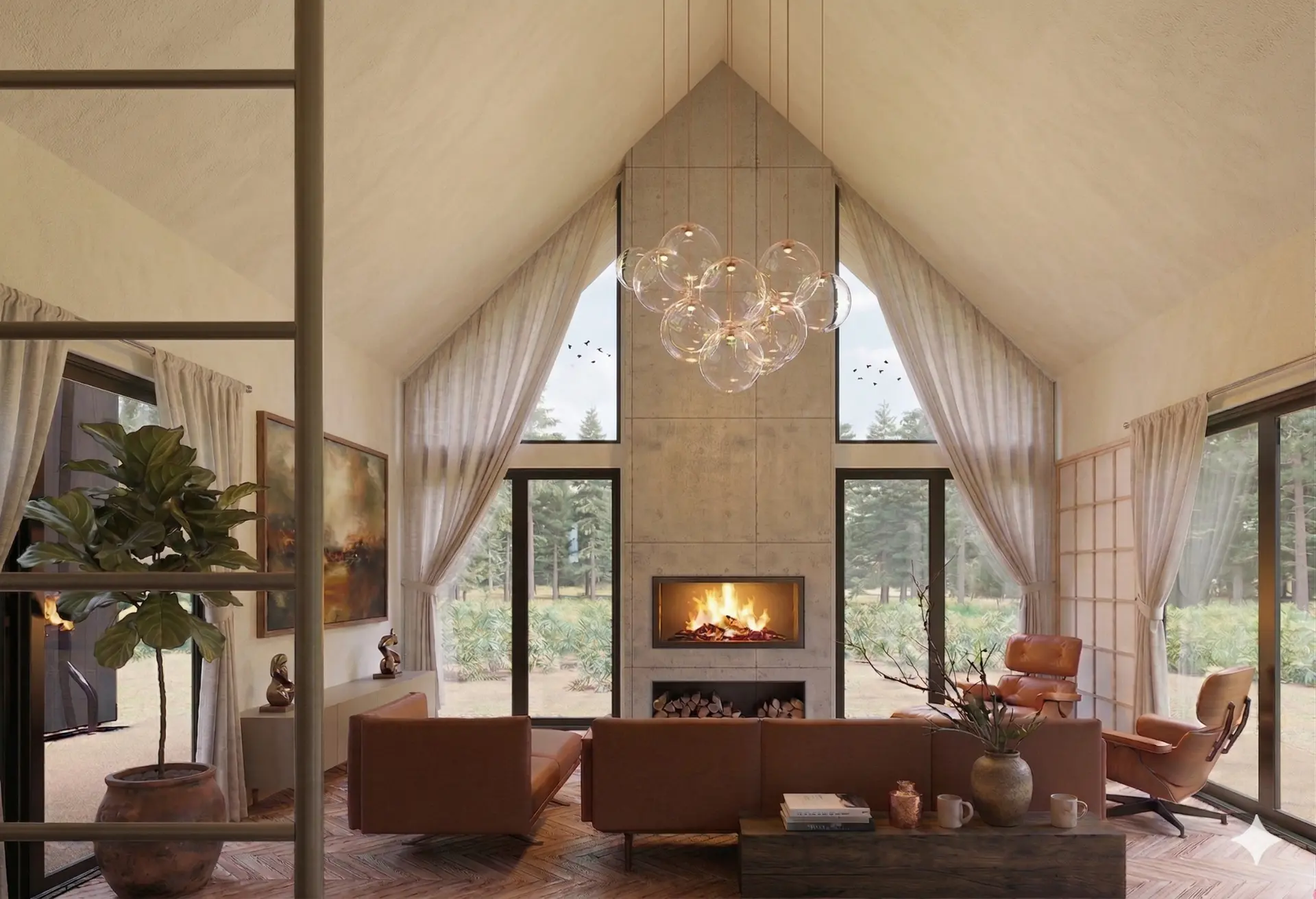 Outdoor decks and terraces are constructed using thermally treated wood, reinforcing the connection between the built form and the landscape. Inside, the material language continues with clean finishes and natural textures, creating a cohesive and timeless modern home in the Catskills.